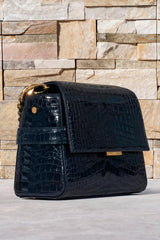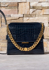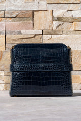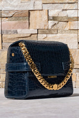 The Fortune handbag in exotic alligator skin is an architectural jewel box, not least because its gold chain strap doubles as a necklace. Thoughtfully designed with compact proportions and maximum volume, its clean lines are accented by peek-a-boo side scallops and soft corners. The Fortune bag is lined with true suede to create a piece that is as luxurious on the inside as it is on the outside. Interior compartments include a gusseted and zipped back pocket, as well as an open patch pocket for easy access items such as phones. Internal magnets seamlessly secure the outer straps, which can be worn inside or outside the flap. And a hidden clasp secures the flap to the bag. A truly timeless piece that channels understated elegance.