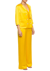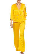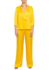 Our palazzo pant is a relaxed, airy, silk, wide leg pant - equally wearable by day or night. The front button and zip betray a comfortable practicality that the flattering cut secrets away. An elastic insert at the centre back of the waistband is both functional and stylish. Wear it with the palazzo shirt for a chic top to toe look.
