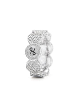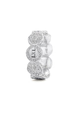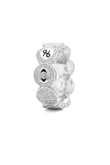 LXL fortune ring in 18K white gold with 1.75ct round cut diamonds on circular links. 324 stones over 9 classic LXL ingots measuring 8mm each. The fortune ring features discreet diamond evil eye.