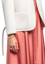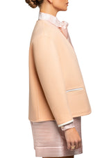 Our softer than soft double face cashmere jacket is ideal for rugging up on an aircraft or in air conditioning. Comfortable enough to fall asleep in, wrinkle free and ready to wear, this leather trimmed piece does double-duty as a second jacket when reversed. Patch pockets become phone and lipstick pockets when the outside is in. The "reversible" is truly the two best coats in every LXL wardrobe.