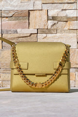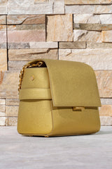 The Fortune handbag in stamped-grain calf leather is an architectural jewel box, not least because its gold chain strap doubles as a necklace. Thoughtfully designed with compact proportions and maximum volume, its clean lines are accented by peek-a-boo side scallops and soft corners. The Fortune bag is lined with true suede to create a piece that is as luxurious on the inside as it is on the outside. Interior compartments include a gusseted and zipped back pocket, as well as an open patch pocket for easy access items such as phones. Internal magnets seamlessly secure the outer straps, which can be worn inside or outside the flap. And a hidden clasp secures the flap to the bag. A truly timeless piece that channels understated elegance.
