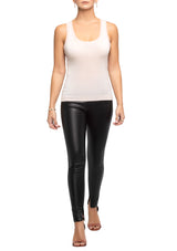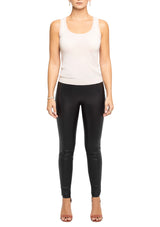 Our plonge leather pant is made from an unparalleled nappa leather that feels like a true second skin against your body. It features an elasticated waist for a true streamlined look. Wear the ankle zips closed for a clean ankle length finish, or open if you prefer an asymmetrical look.