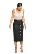 Mid length skirt with button closure in black