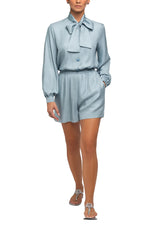 Voluminous sleeves and classic LXL buttons define this easy-fit pussy bow shirt that works with every skirt, pant and short in the collection. Combine textures by layering it under a tweed jacket.