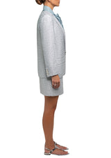 Our tuxedo blazer combines a deconstructed lapel with a clean neckline to create a modern take on a classic style. Oversized LXL buttons, jet pockets and custom silk lining complete the look. The silver tweed iteration of this jacket is the ultimate statement piece for day or night.
