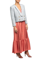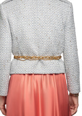 Short Tuxedo Jacket in Grey / Gold Tweed