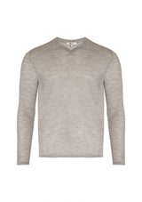 Incredibly soft cashmere, spun into our ultrafine LXL weight, creates this timeless "easy v neck" sweater. It features a subtle jacquard of the classic LXL chain on the sleeve and above the waistband. Wear it alone or over a shirt to keep the sunset chill at bay.